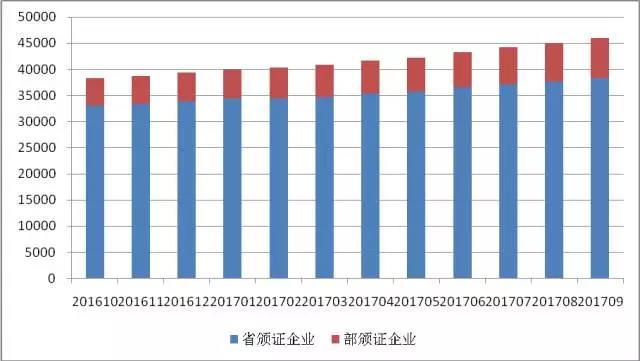 圖1 全國(guó)持證企業(yè)數(shù)量(家)