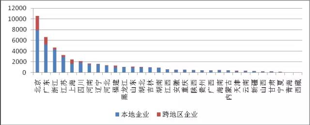 在38292家本地企業(yè)中,北京7849家,廣東5191家,北京、廣東兩地的增值電信企業(yè)數(shù)量在全國(guó)遙遙領(lǐng)先,接下來(lái)依次是浙江、江蘇、四川、上海等,6地集中了全國(guó)61.9%的增值電信企業(yè),西部12省份的增值電信業(yè)務(wù)經(jīng)營(yíng)者僅占全國(guó)的12.6%。