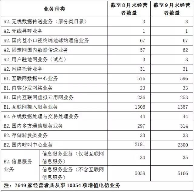 截至9月末跨地區(qū)各類增值電信業(yè)務(wù)經(jīng)營(yíng)者數(shù)量