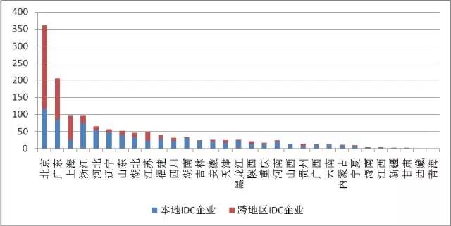 跨地區(qū)IDC持證企業(yè)數(shù)占全國(guó)IDC持證企業(yè)總數(shù)的42.8%,遠(yuǎn)高于跨地區(qū)持證企業(yè)數(shù)在全國(guó)持證企業(yè)數(shù)中的占比16.6%。